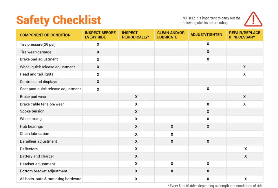 HINWEIS: Vor jeder Fahrt ist es wichtig, die folgenden Sicherheitsprüfungen durchzuführen.