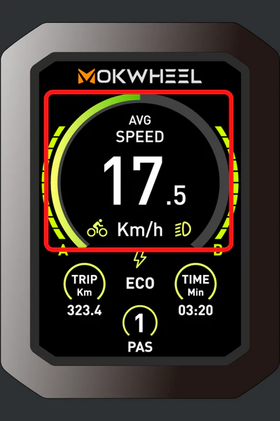 Speed Display: Shows the current speed. When the speed bar exceeds half, the bike switches from Eco mode to Power mode.