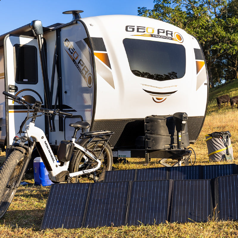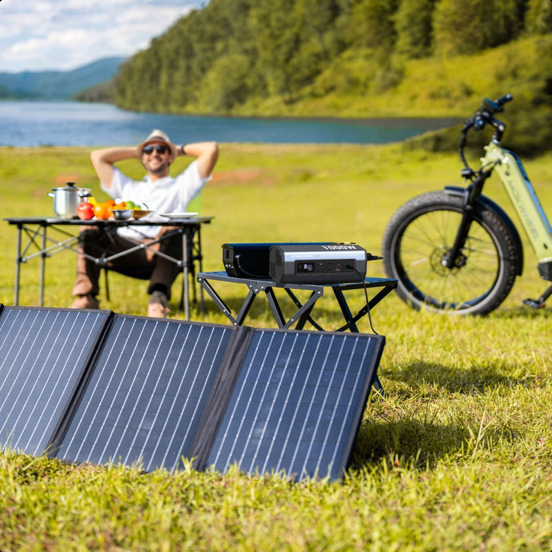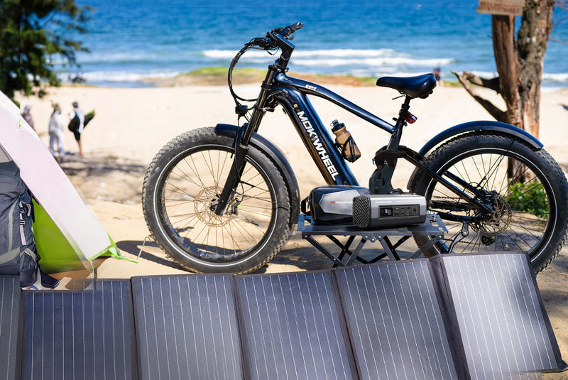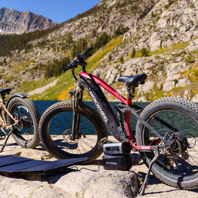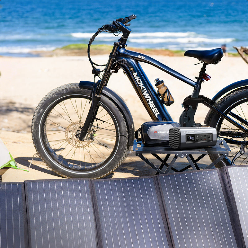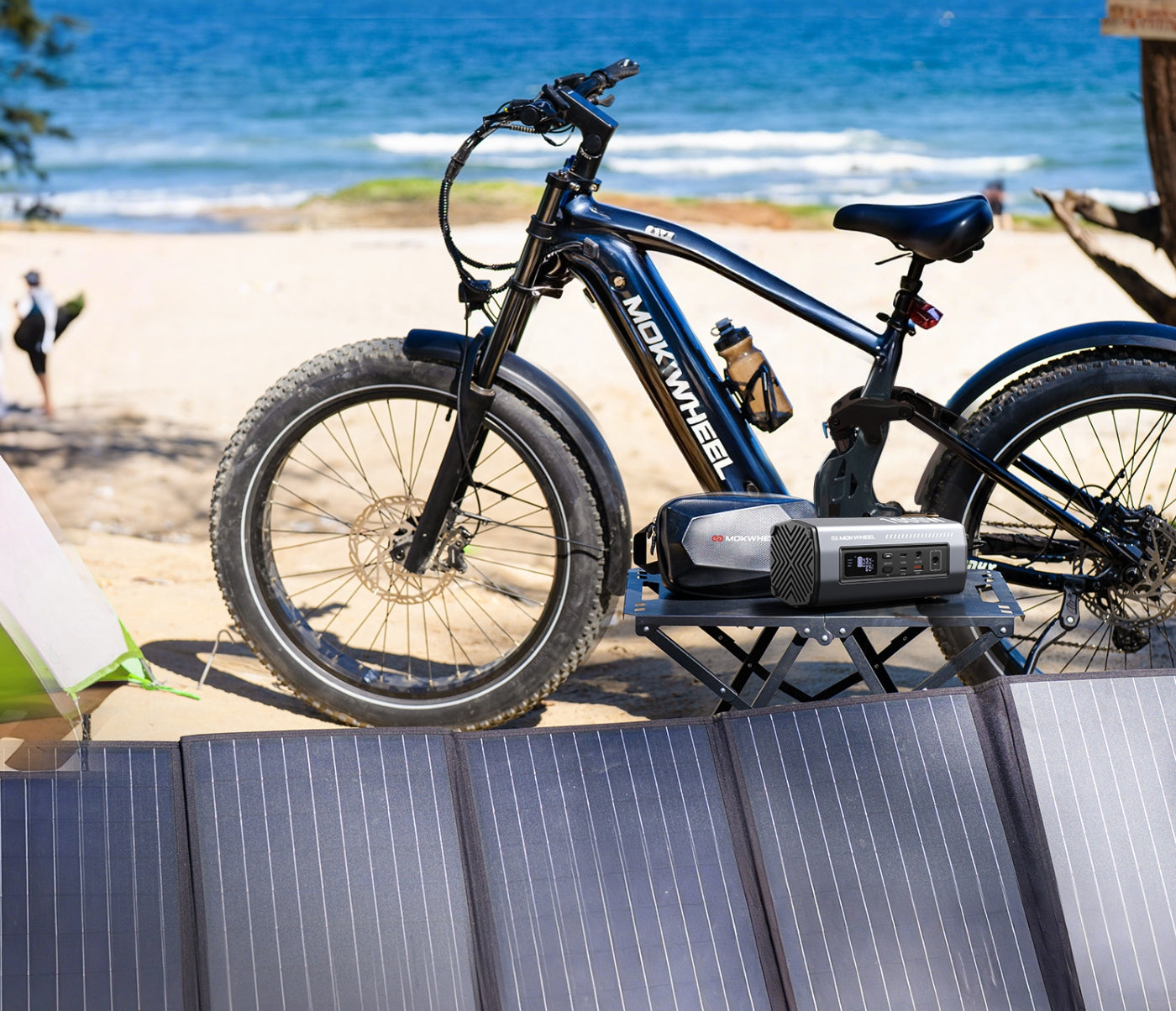 Pair your Mokwheel e-bike battery with our Portable Solar Inverter to bringdependable electricity wherever adventure takes you. From camping gear tomobile devices,enjoy fast, effortless power while off the grid-just plug in andkeep your essentials running.