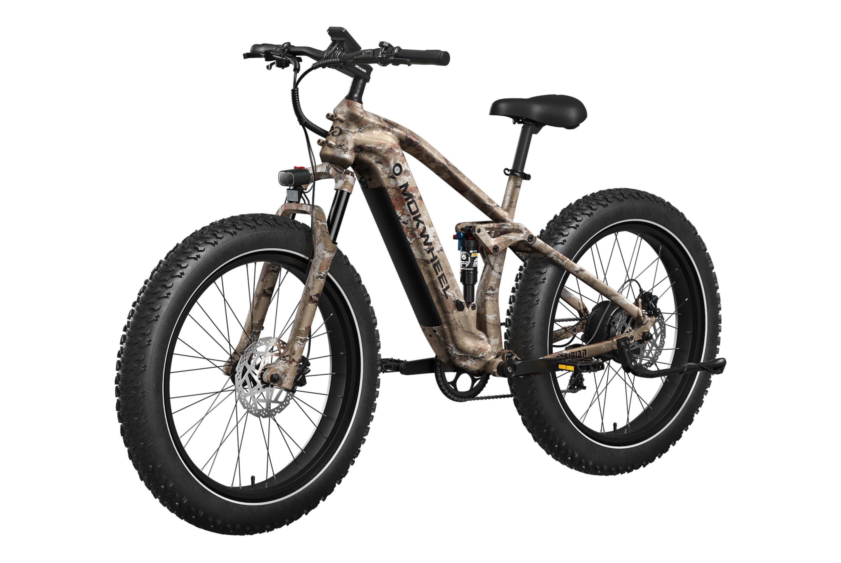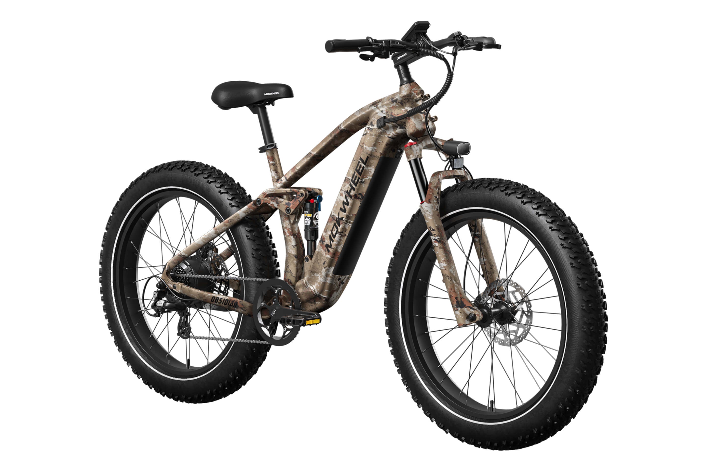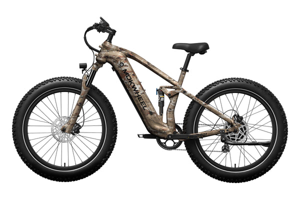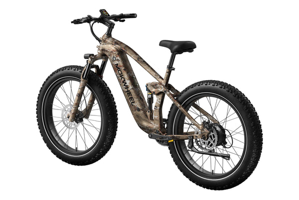 The Obsidian by Mokwheel is a full-suspension, high-performance electric bike designed for riders who demand agile handling and confident control on challenging terrain. Powered by a 250W motor and a 48V 940Wh battery, it delivers strong climbing performance together with responsive, well-balanced power delivery.The dual suspension system, combined with 26×4.0" wide tires, significantly enhances stability on mud, gravel and uneven surfaces. Supported by hydraulic brakes and a reinforced frame, the Obsidian is a reliable choice for adventure-focused riders who expect both off-road capability and everyday practicality.
