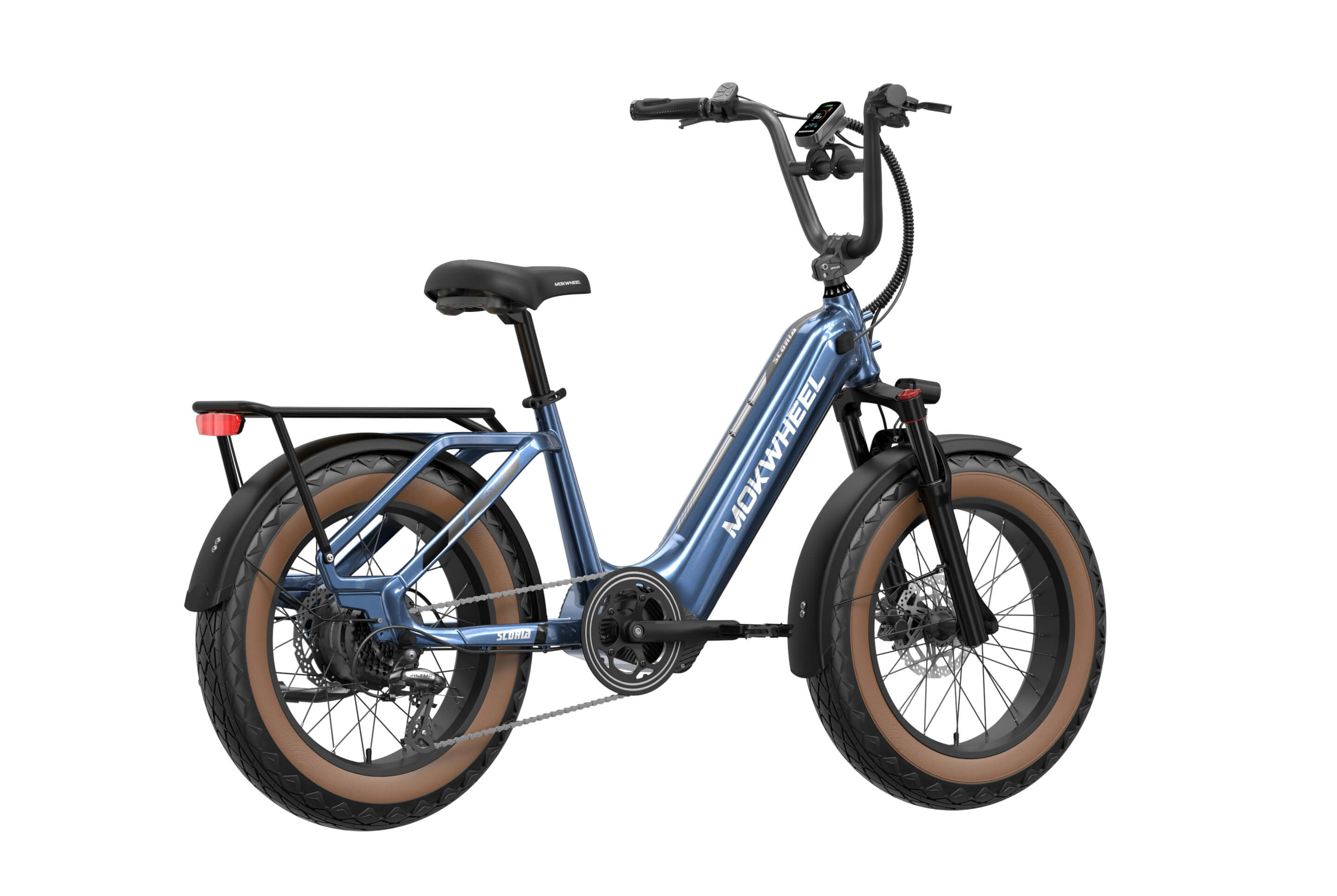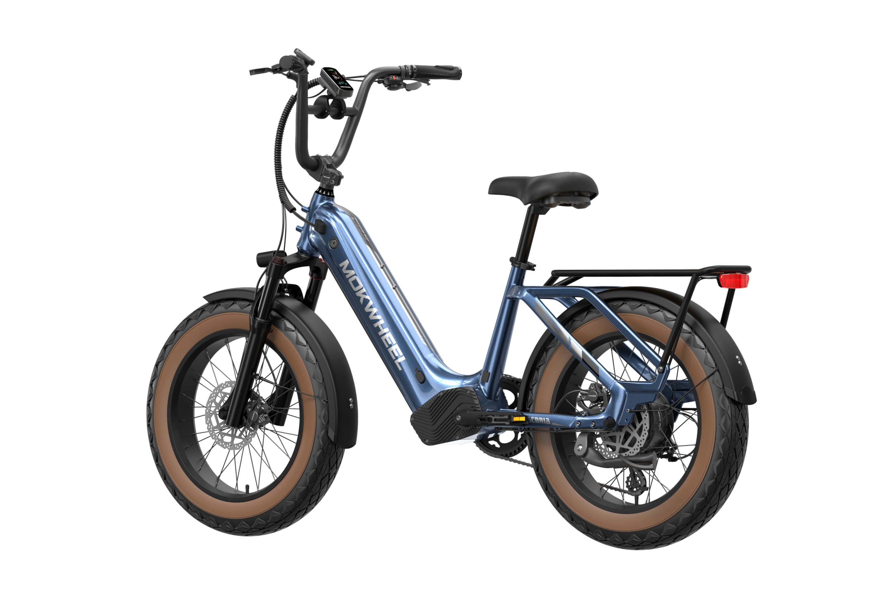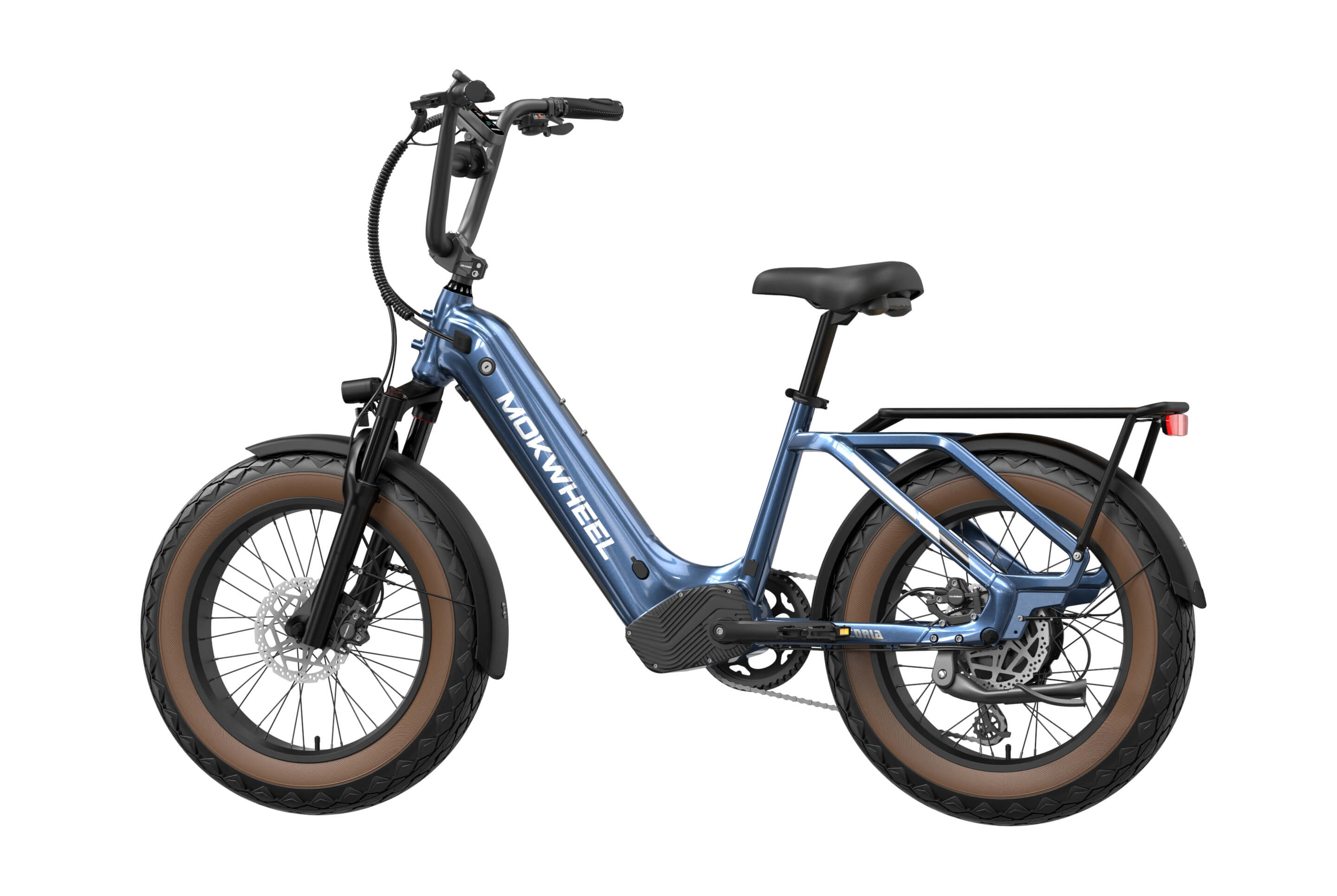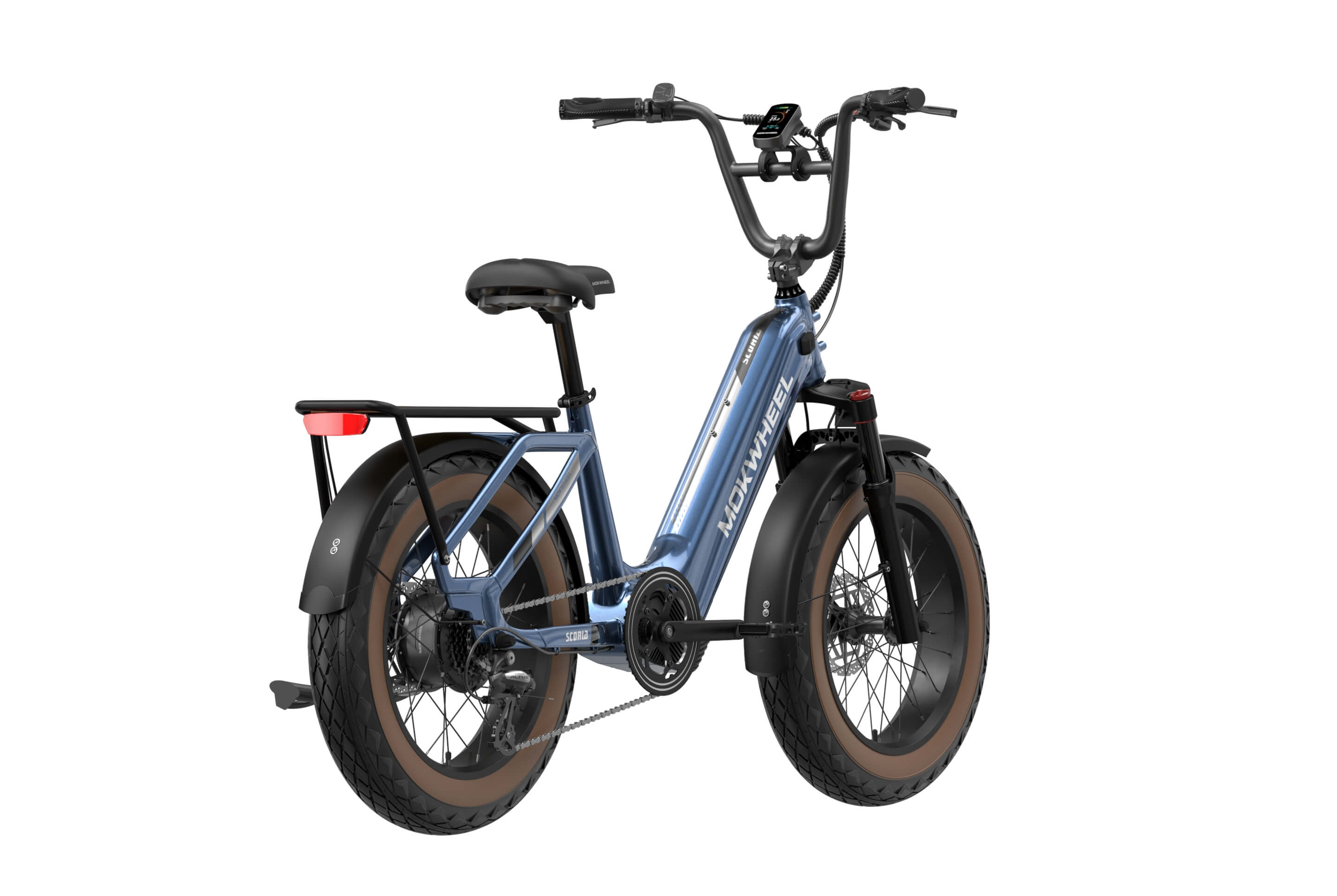 The Scoria 3.0 is a compact cargo e-bike from Mokwheel, designed for stability, practical use, and versatile everyday applications. Its 250W motor paired with a 48V 19.6Ah battery delivers strong performance and long range. The 20×4.0-inch wide tires and low-step frame make it easy and safe to handle for riders of different heights. Equipped with hydraulic brakes, a reinforced frame, and an integrated rear cargo platform, the Scoria 3.0 is ideal for transporting gear, running daily errands, family rides, and maneuvering in tight urban spaces. Compact, powerful, and easy to operate — a perfect choice for riders seeking a small-format e-bike without compromising performance.