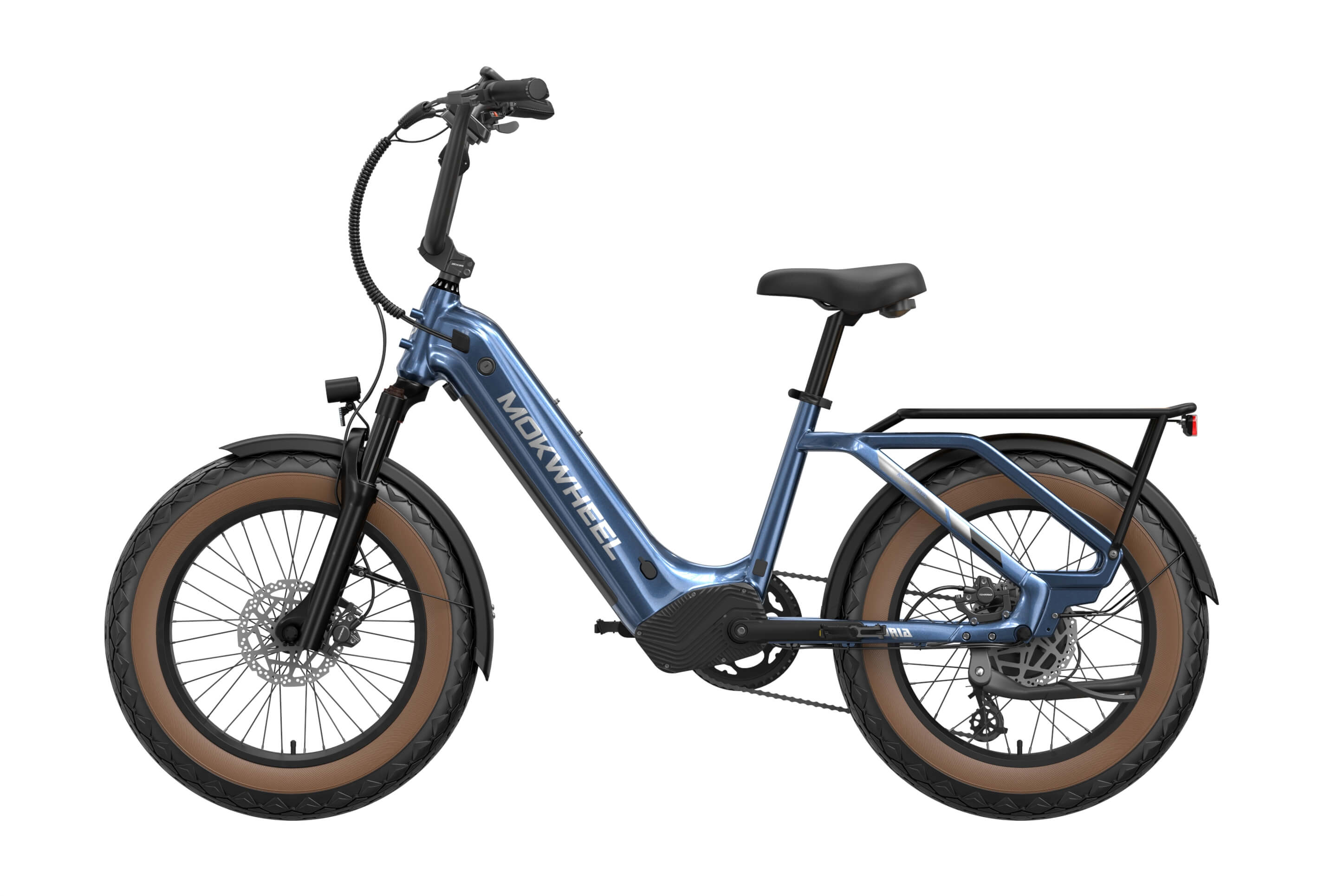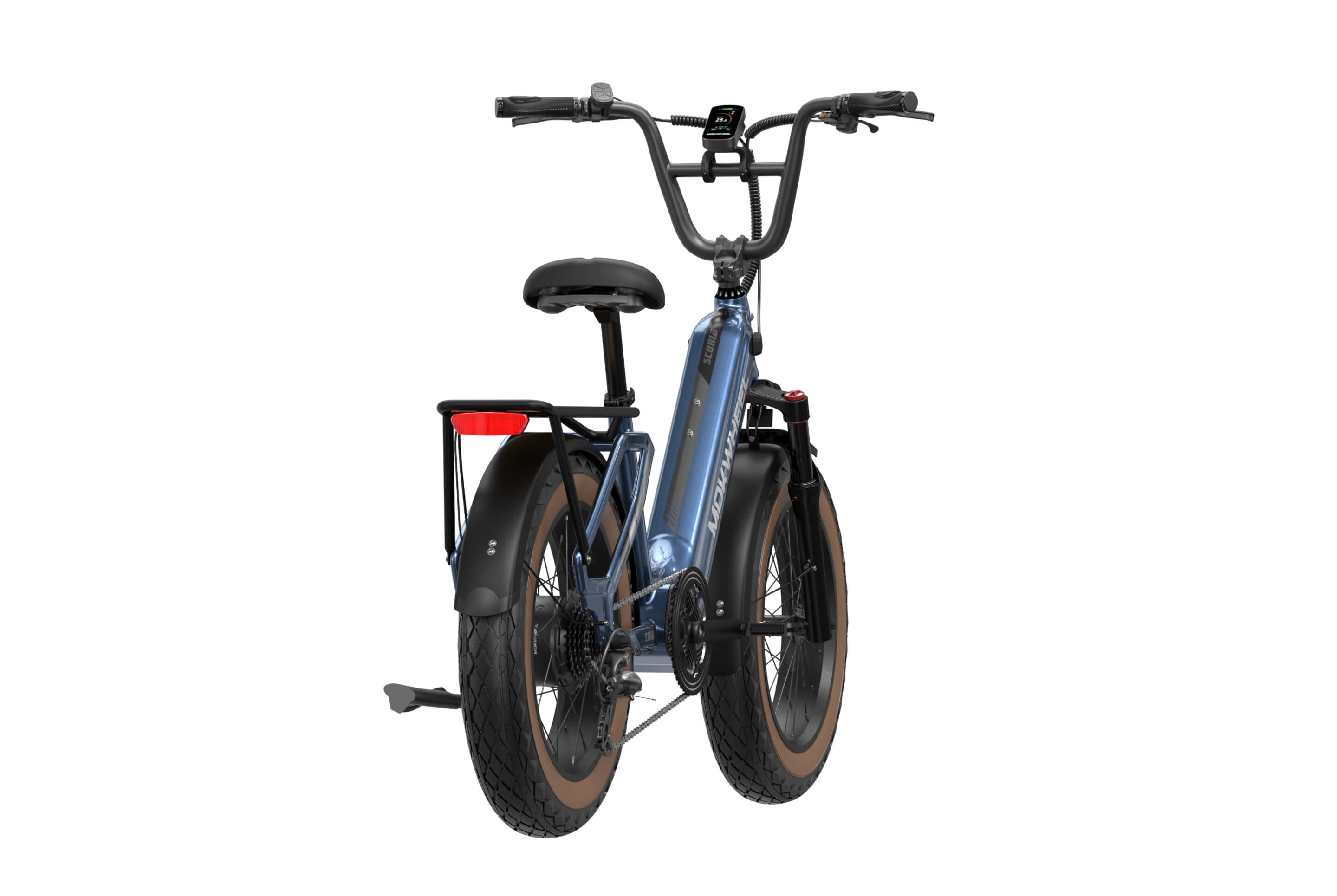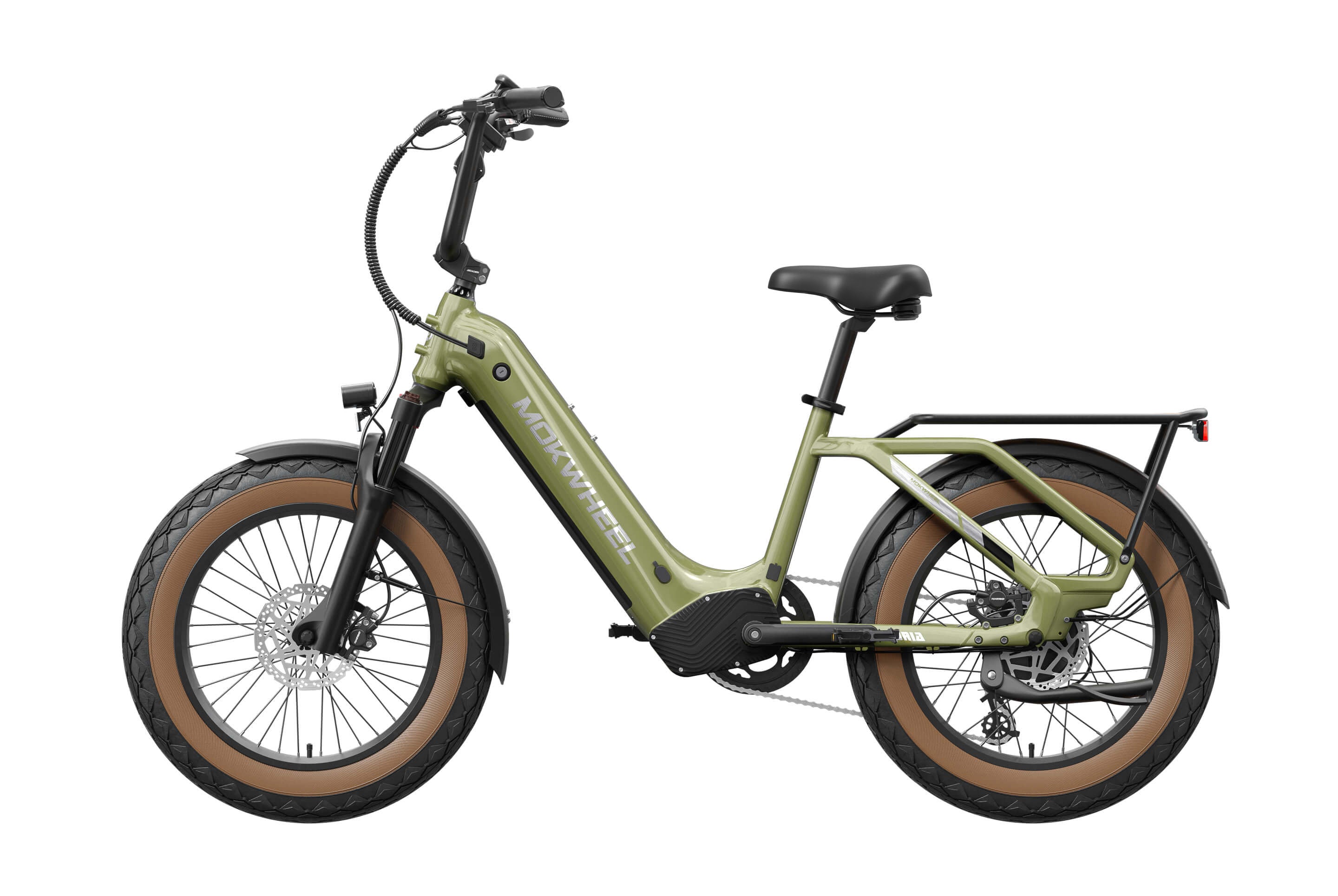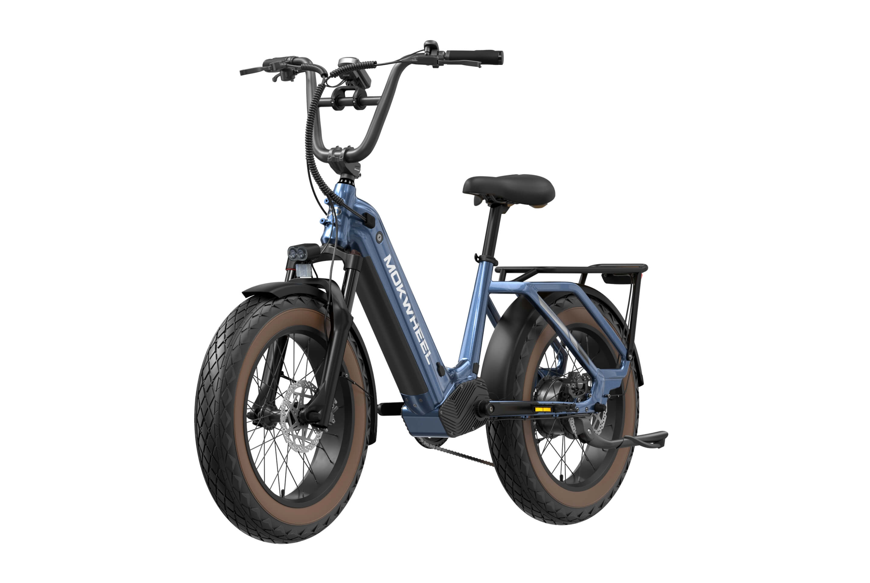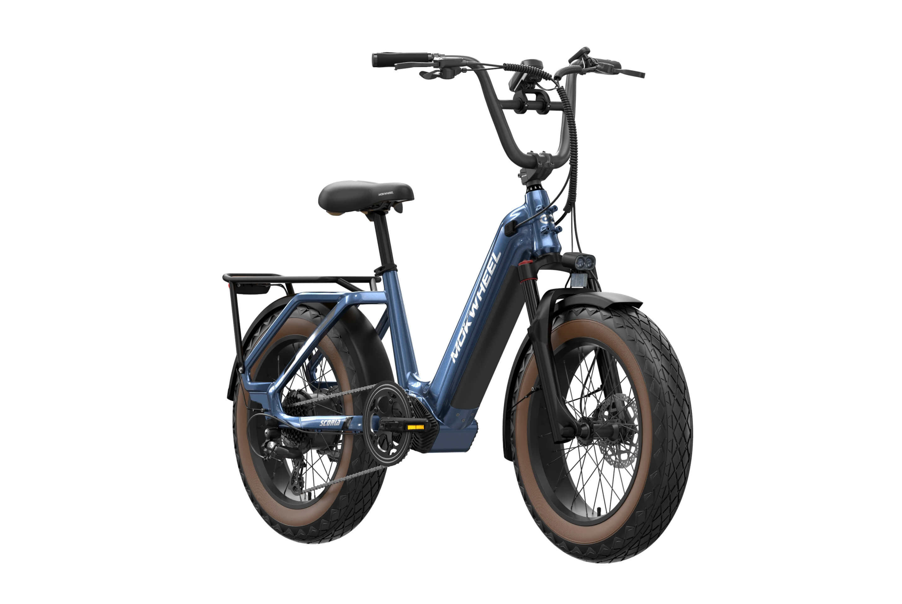 The Scoria 3.0 is a compact cargo e-bike from Mokwheel, designed for stability, practical use, and versatile everyday applications. Its 250W motor paired with a 48V 19.6Ah battery delivers strong performance and long range. The 20×4.0-inch wide tires and low-step frame make it easy and safe to handle for riders of different heights. Equipped with hydraulic brakes, a reinforced frame, and an integrated rear cargo platform, the Scoria 3.0 is ideal for transporting gear, running daily errands, family rides, and maneuvering in tight urban spaces. Compact, powerful, and easy to operate — a perfect choice for riders seeking a small-format e-bike without compromising performance.